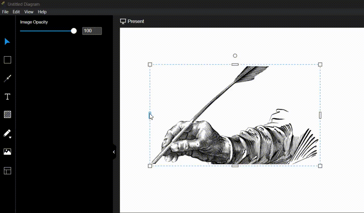 Once you add an image to canvas, you have a few options. You can easily crop and change the opacity of your imported images or animated icons like this...